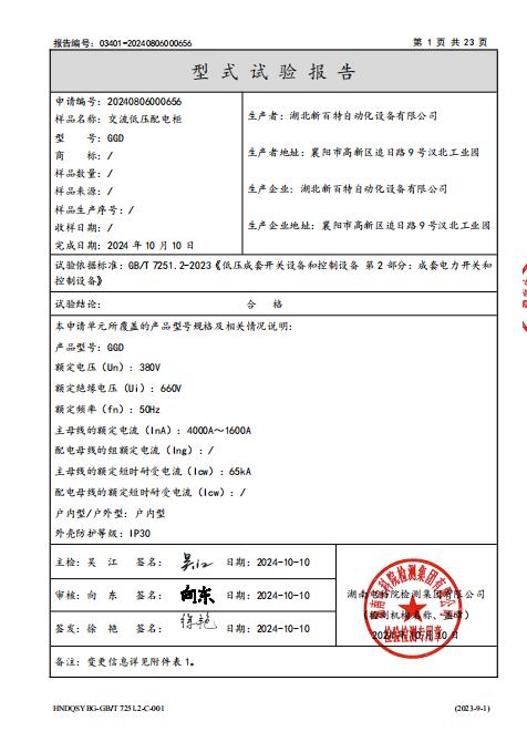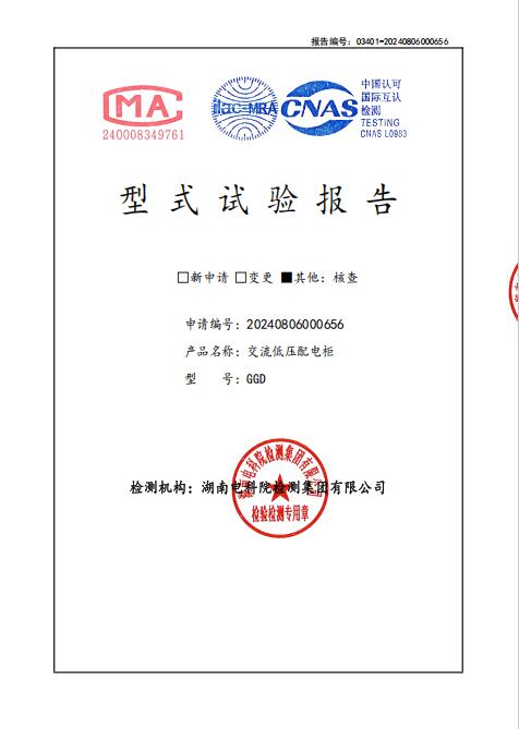 低壓開關(guān)柜GGD型式試驗報告