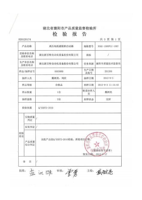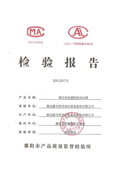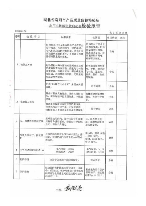 高壓電機(jī)液阻軟啟動(dòng)器檢驗(yàn)報(bào)告